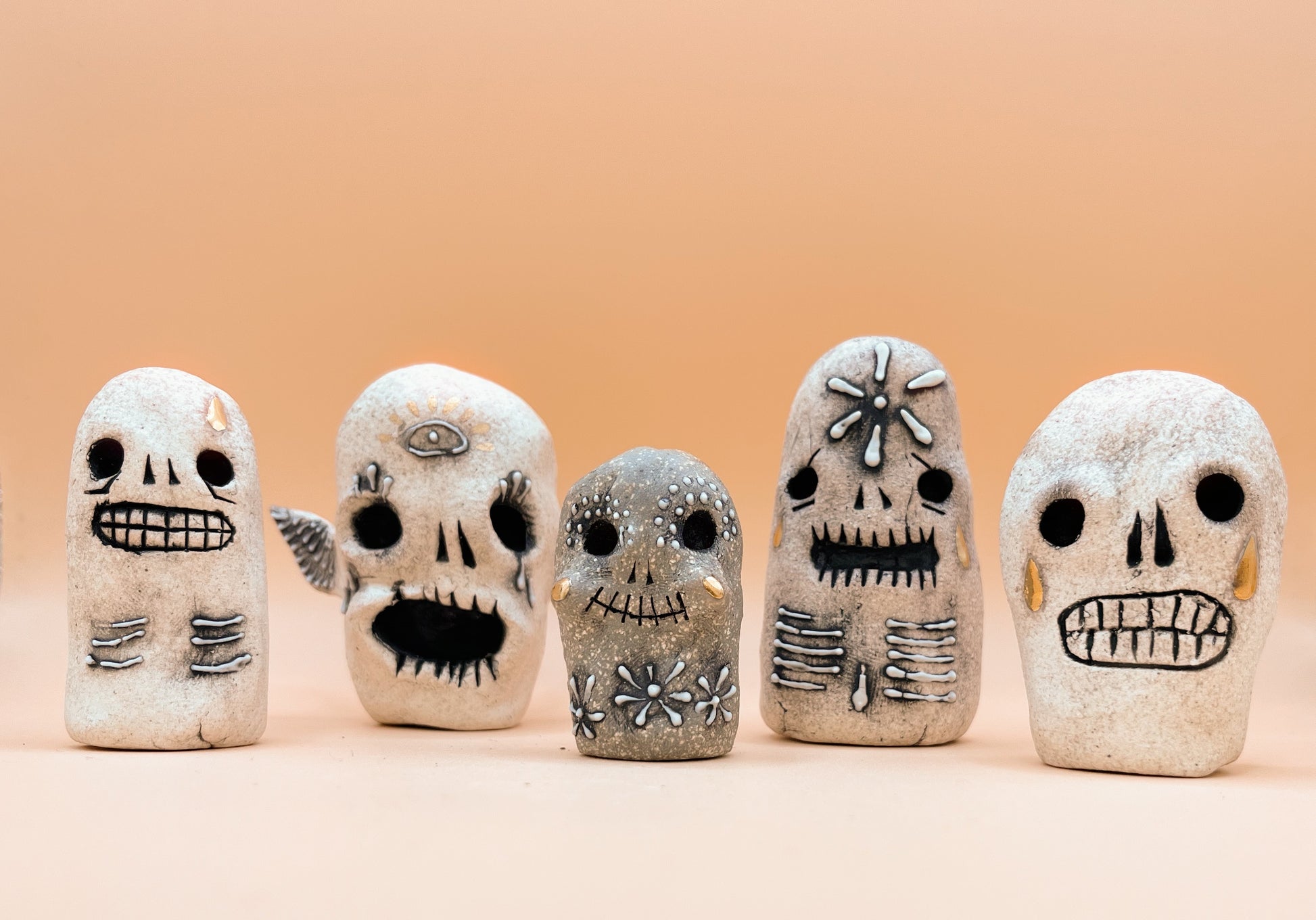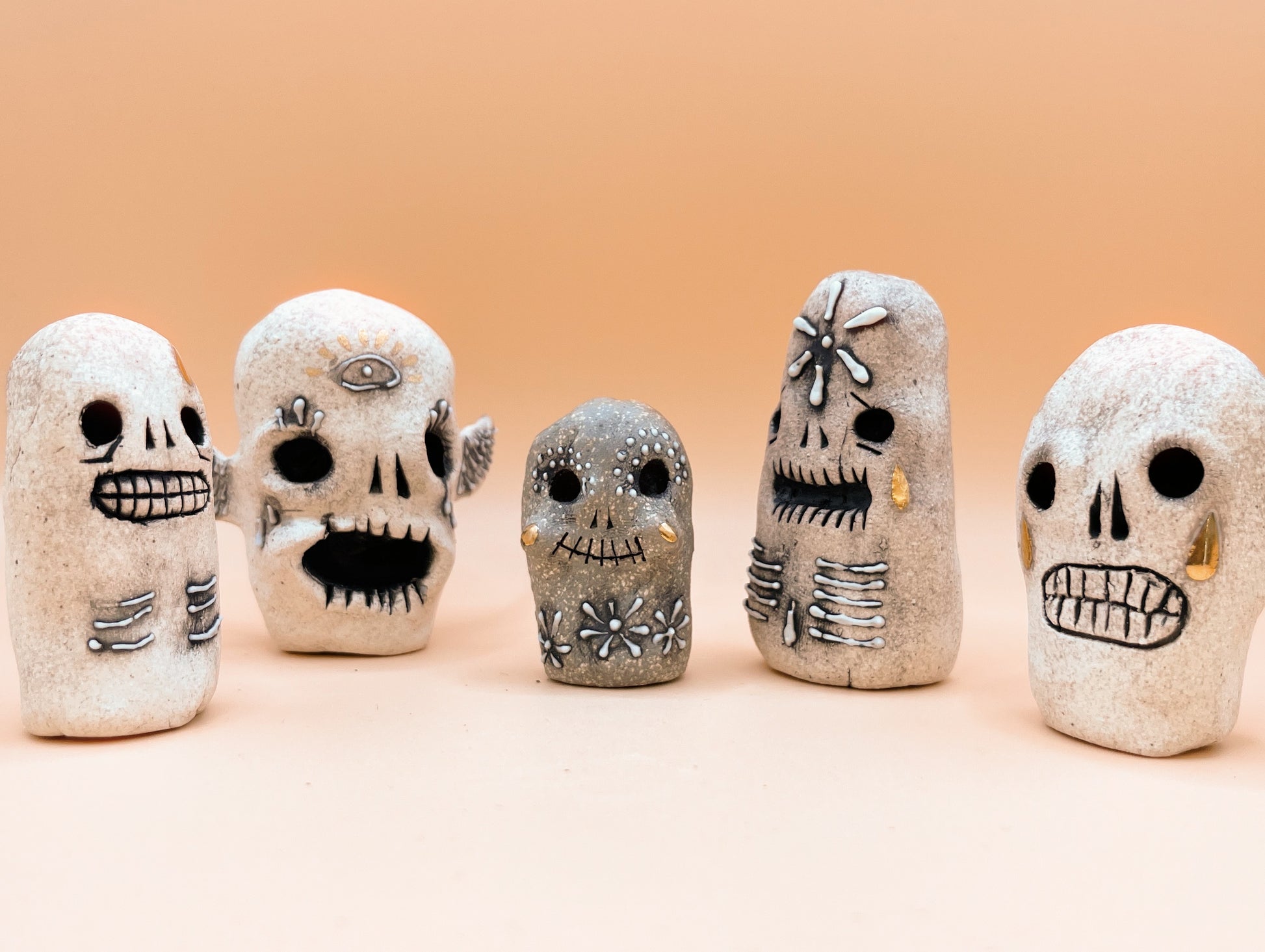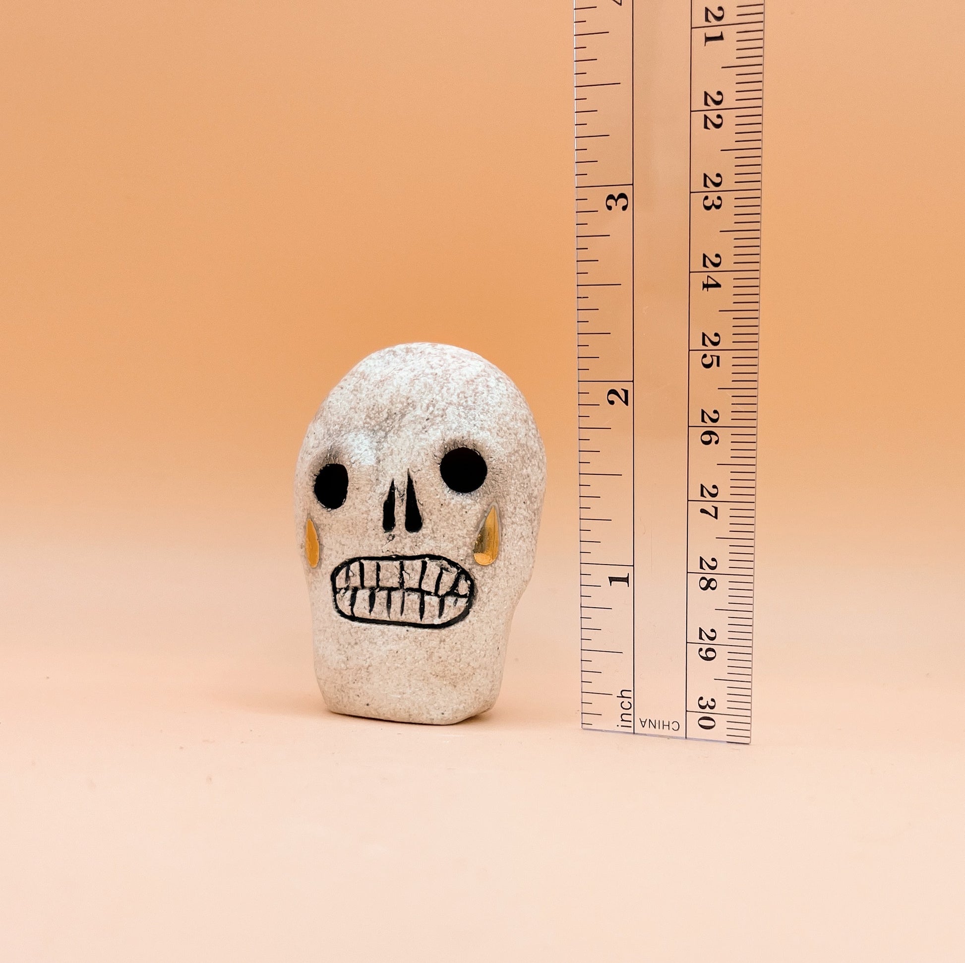 Vegas Buff Skull with 18k gold accent tears, 2"