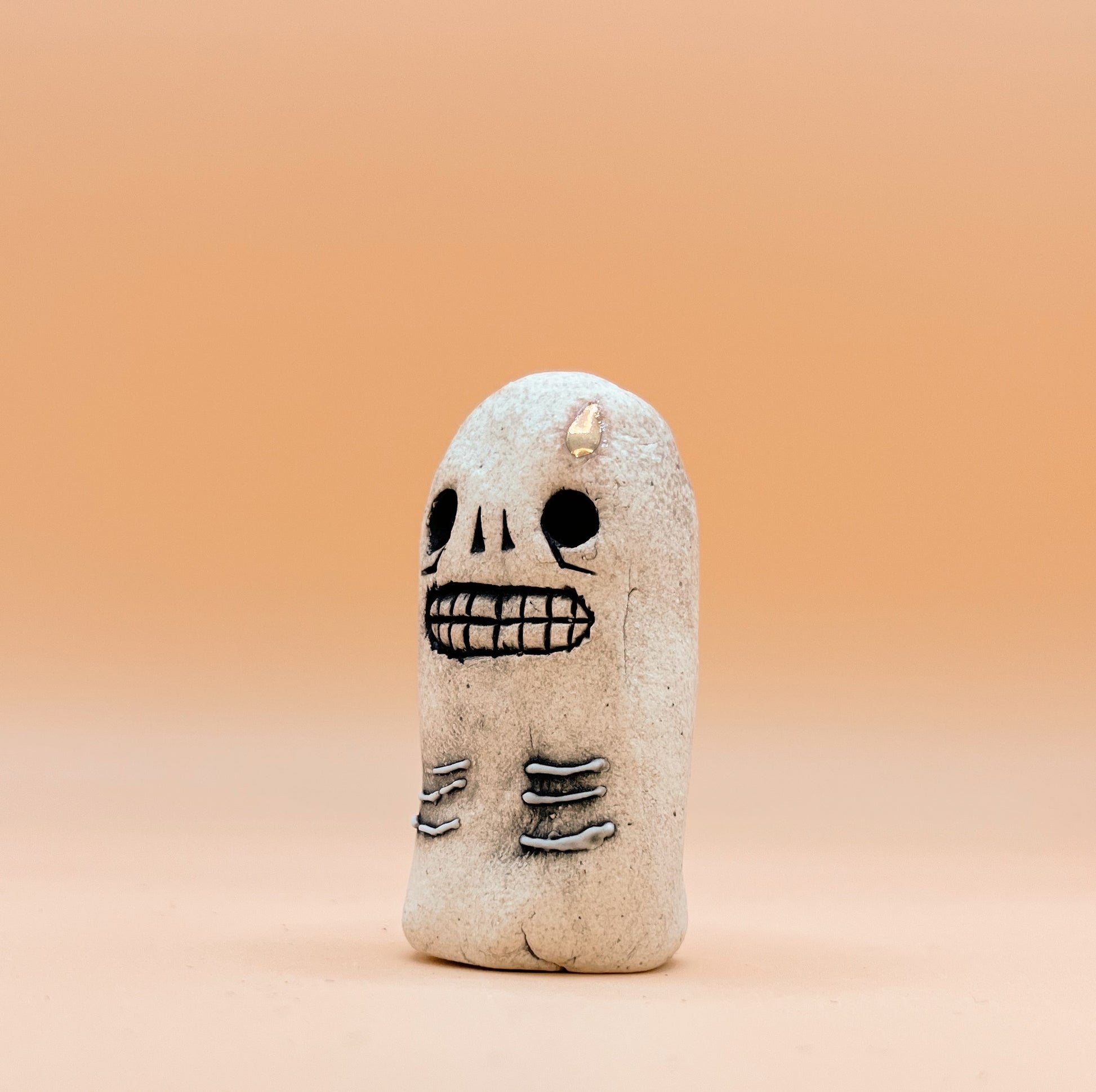 Vegas Buff Skull with 18k gold accent sweat, 2"